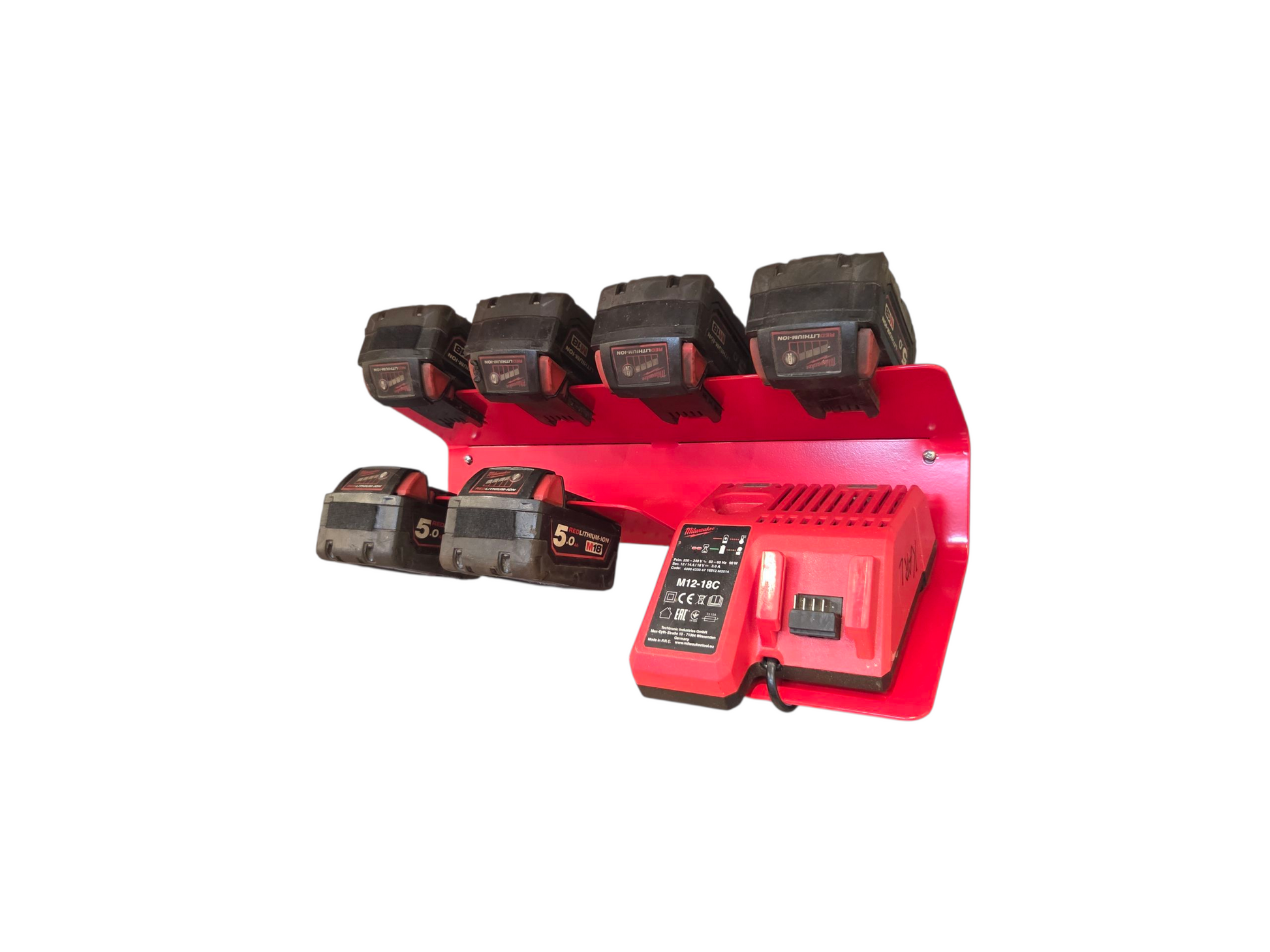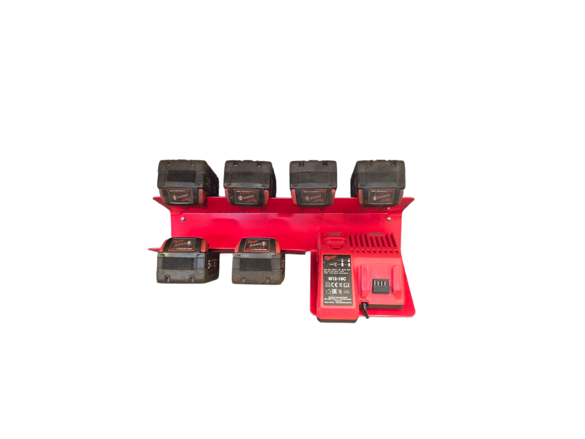 Gjør det enkelt å holde orden på batteriene dine! Denne holderen har plass til 1 lader og 6 M18-batterier.